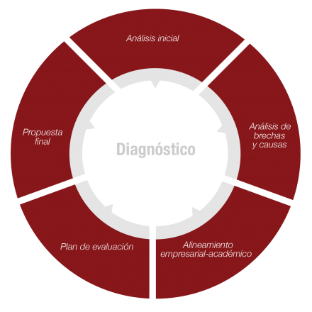 Es un proceso consultivo que consiste en el análisis y validación de las necesidades empresariales, y la comprensión de las estrategias y entorno más influyentes. Incluye la identificación de las causas de las oportunidades de mejora, y el alineamiento entre los objetivos del negocio y los contenidos académicos, para así asegurar la personalización. Permite validar el grado de evaluación deseado e identifica los factores individuales y ambientales que influyen en la aplicación de lo aprendido. Garantiza así, la calidad de la propuesta que incluye el programa de estudio, un plan de acompañamiento, e iniciativas adicionales para mejorar el desempeño.