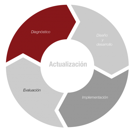 El proceso de actualización se enfoca en los resultados del diagnóstico, diseño, desarrollo e implementación, y los reportes empresariales y académicos. La actualización permite la creación de una propuesta de re-certificación o aplicación de nuevos programas educativos e iniciativas de mejoramiento de desempeño. Se trata del insumo para una nueva fase que asegura procesos de educación continua y profesionalización de largo alcance. Requiere del compromiso y participación activa del cliente, la gerencia, profesores y estudiantes que han logrado un desempeño académico y laboral de excelencia.