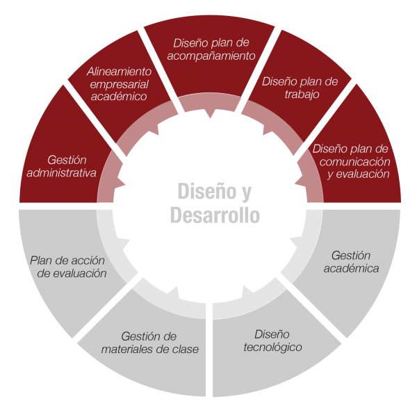 El proceso de diseño y desarrollo clarifica las expectativas empresariales, alinea el programa académico con la realidad empresarial, permite una adecuada planificación para el acompañamiento, comunicación y monitoreo, y principalmente, garantiza la calidad de los programas de educación empresarial y las iniciativas de desempeño.