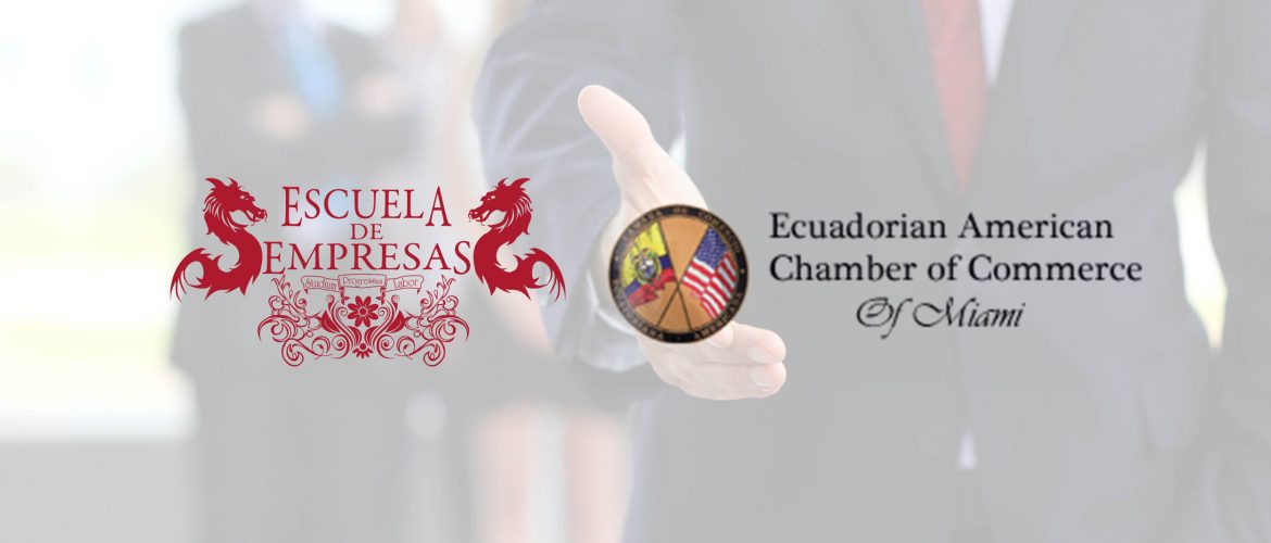 Ricardo J. Arosemena, presidente de la Ecuadorian American Chamber of Commerce of Miami y Ana María Novillo Rameix, directora de Escuela de Empresas USFQ firmaron una alianza estratégica que permitirá fortalecer el desarrollo del talento de sus socios a través de la educación empresarial.