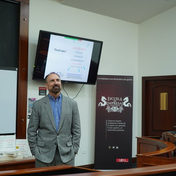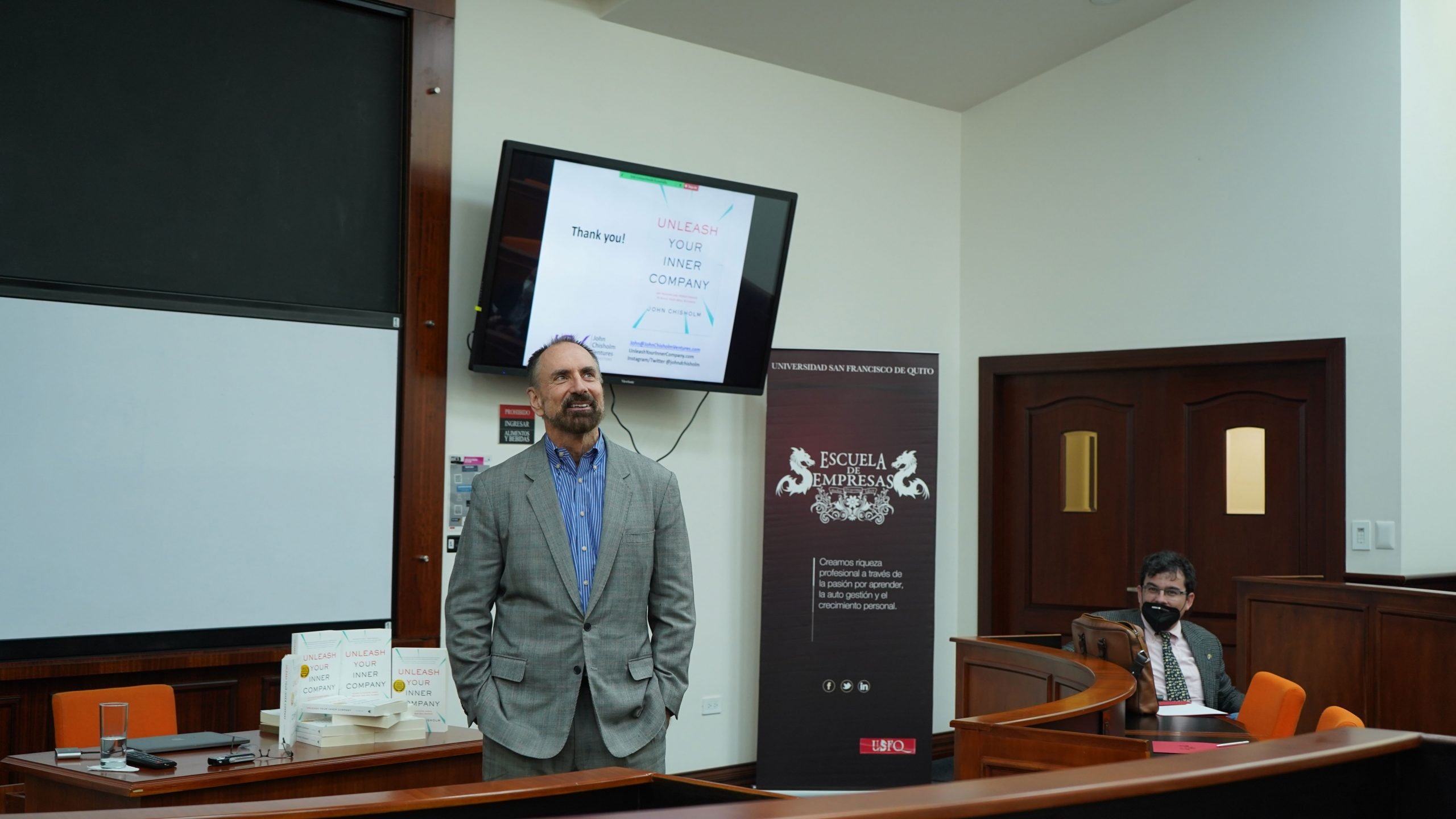 Escuela de Empresas USFQ tuvo el honor de recibir a John Chisholm, director general, empresario e inversor con más de tres décadas de experiencia, presidente de la Asociación mundial de exalumnos de MIT y autor del best seller de Amazon, Unleash your inner Company, en la charla híbrida dirigida a la comunidad USFQ.