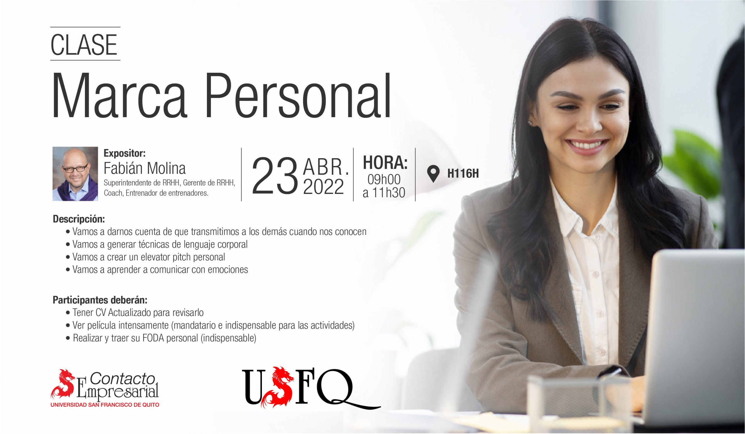 Los estudiantes de las Maestrías en Mercadotecnia, Gerencia Bancaria y Financiera y Alumni de la Maestría en Administración de Empresas fueron parte de una clase de marca personal, un evento organizado por Contacto Empresarial USFQ.