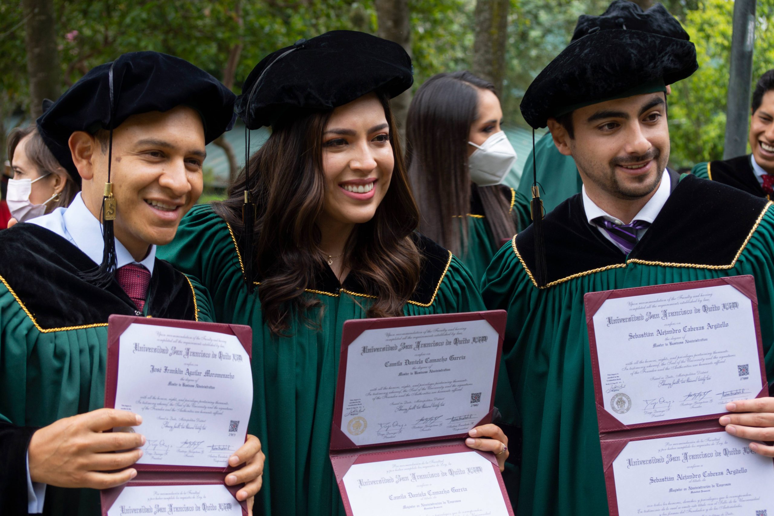 Los estudiantes de las Maestrías de Administración de Empresas, Gerencia Bancaria y Financiera y Mercadotecnia de Escuela de Empresas USFQ recibieron su título de máster en la Quincuagésima Cuarta Ceremonia del Comienzo, realizada el pasado domingo 20 de febrero en el campus de la Universidad San Francisco de Quito.