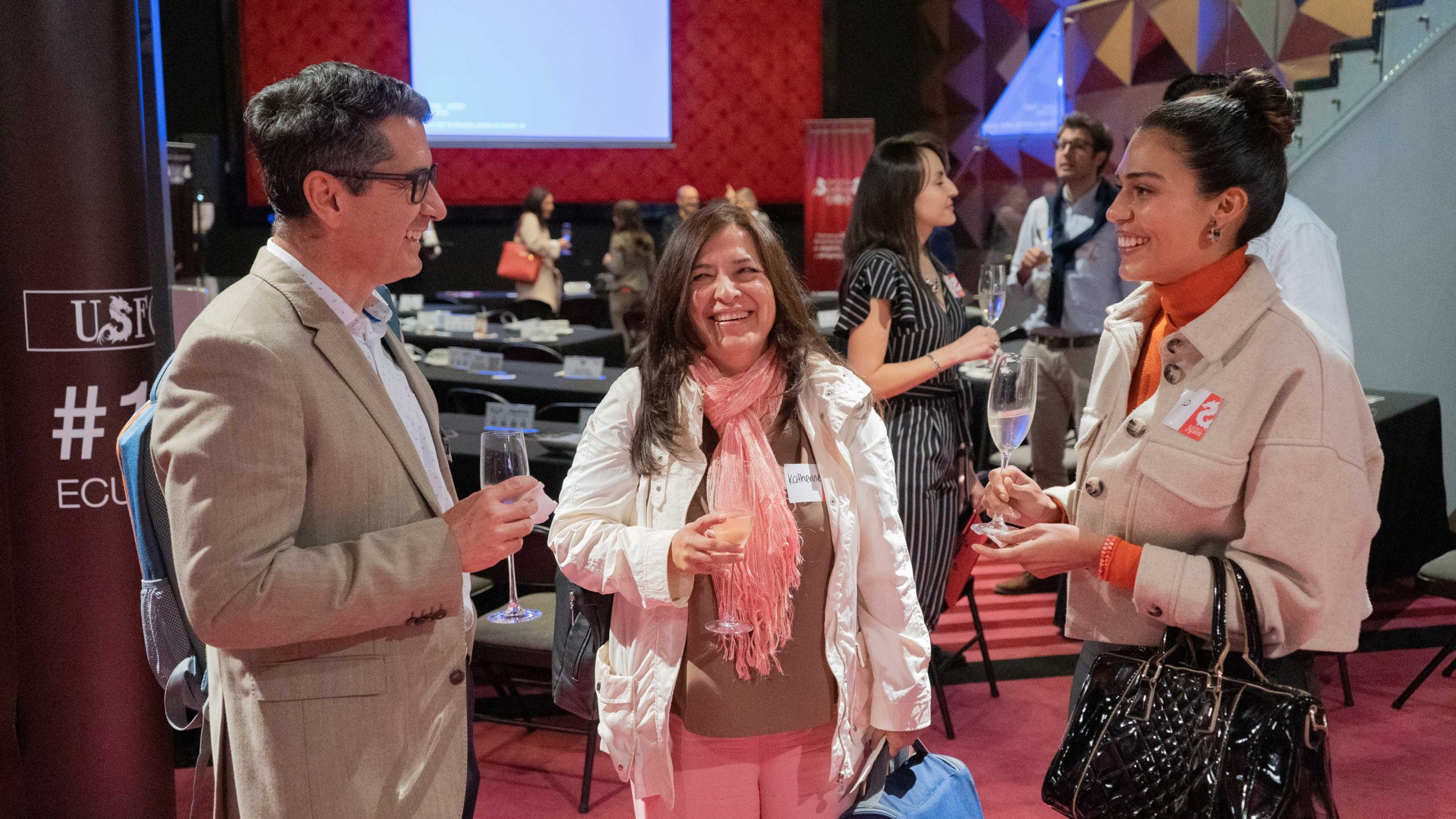 Ana María Novillo, directora de Escuela de Empresas, se unió a este agradecimiento y compartió información importante sobre la oferta de programas de educación empresarial y mejoras realizadas a la malla de la Maestría en Administración de Empresas. Además, invitó a los alumni a ser parte de las actividades extracurriculares que Escuela de Empresas ofrece. Por su parte, Cristina Noboa, coordinadora de Alumni USFQ, les recordó a los asistentes los beneficios de ser parte de la comunidad de graduados de la universidad número uno del País.