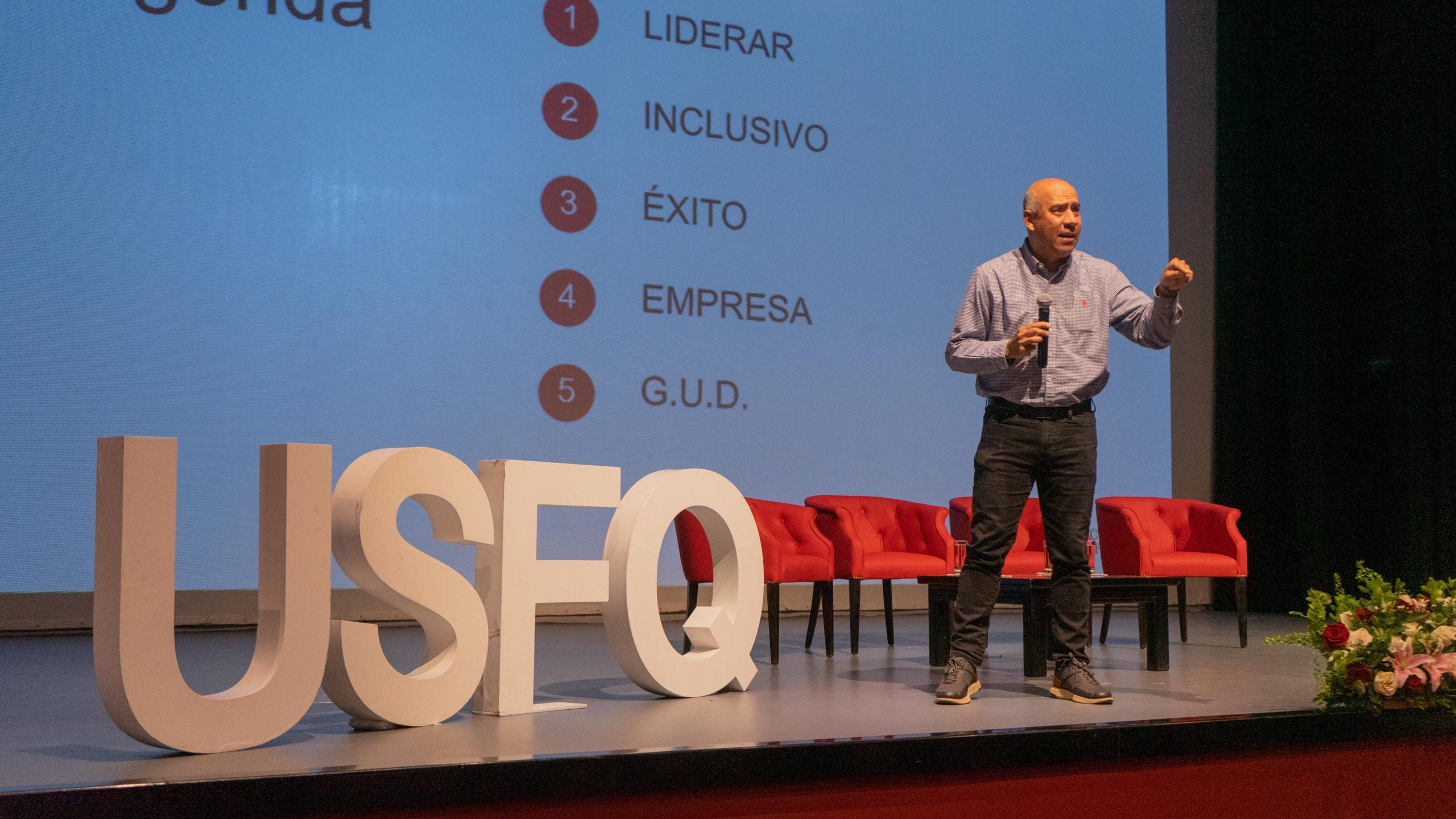 Esta jornada de aprendizaje, networking y vinculación entre academia y empresa inició con el bloque: “El legado de las Artes Liberales”, en el cual Carlos Montúfar, presidente del Consejo de Regentes y miembro fundador de la USFQ; y Santiago José Gangotena, decano de Artes Liberales, compartieron sus perspectivas sobre la importancia de las artes liberales en la formación de profesionales y en los negocios. Durante, su ponencia, Carlos destacó que: “la clave del éxito es reconocer la propia ignorancia”; mientras que, Santiago José recalcó la relevancia de permitir que las ideas se fusionen y den lugar a la creatividad. Además, mencionó que: “Las Artes Liberales te enseñan a apreciar la variada experiencia humana”, frase con la que Santiago Gangotena, fundador de la USFQ, definía la esencia de esta filosofía.
