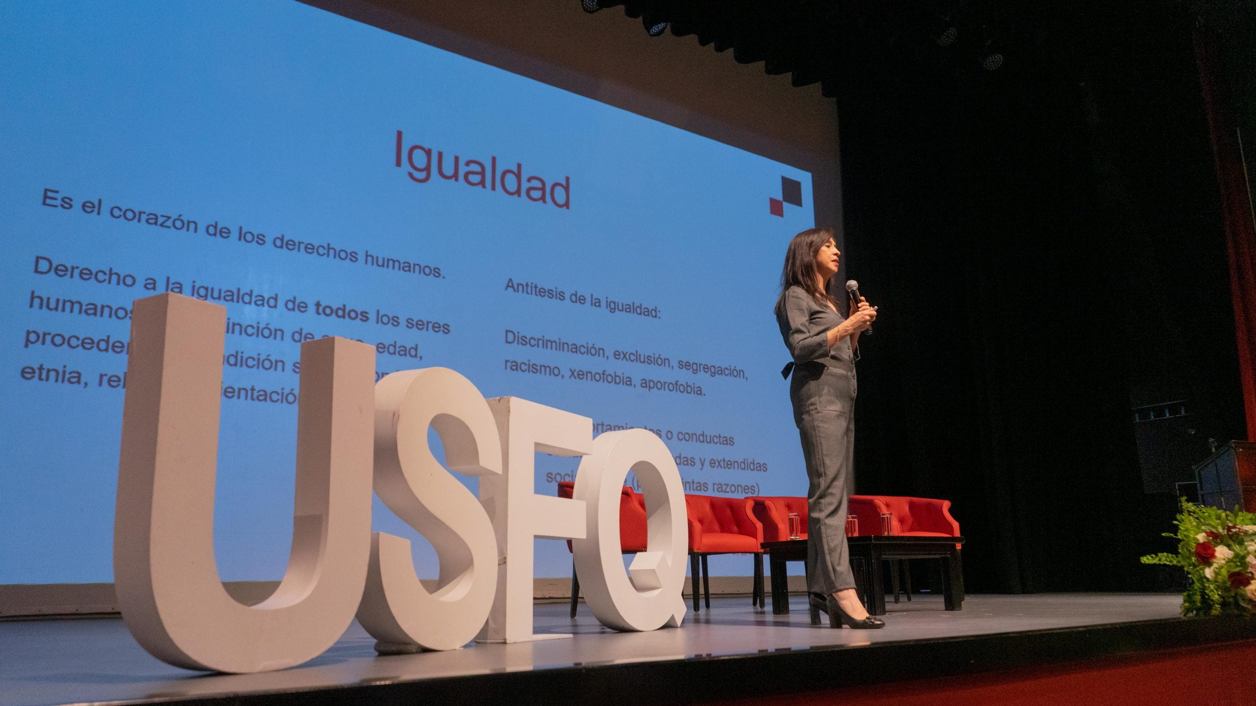 El evento culminó con el foro: “Liderazgo inclusivo para el éxito empresarial”. Antonio Mendoza, consultor en AM Team Consulting y profesor EE-USFQ, motivó a los asistentes a ser líderes inclusivos y generosos para llevar a sus empresas al éxito. Por su parte, Nathalia Novillo, consultora en Urbano Cit Consultores y profesora EE-USFQ, habló sobre igualdad, inclusión, equidad y brecha, conceptos clave a considerar al momento de hablar de liderazgo inclusivo. Además, Oscar Aízaga, gerente de relaciones laborales de Nestlé, compartió sobre las buenas prácticas en temas de diversidad, equidad e inclusión que se aplican en Nestlé y Patricia Torres, consultora en HR Expertise, detalló los rasgos y acciones del líder inclusivo.