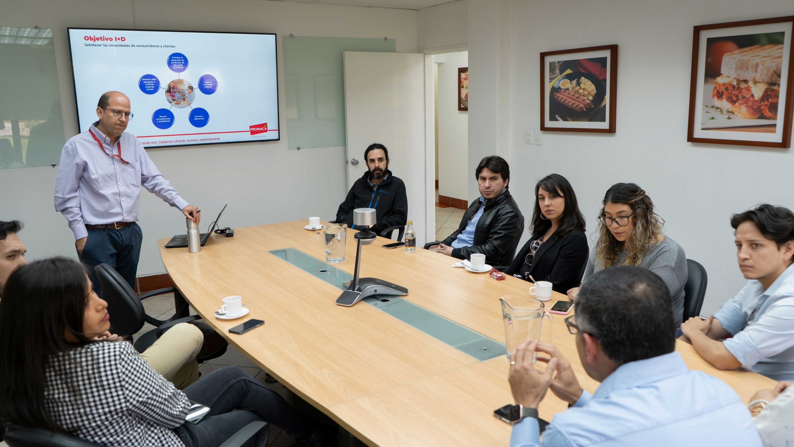 Xavier Tobar, director de comunicación de Pronaca dio la bienvenida a nuestros estudiantes y profesores, quienes, de la mano de Diego Pico, director de investigación y desarrollo de la organización, aprendieron sobre los procesos de innovación que se llevan a cabo dentro de la empresa.
