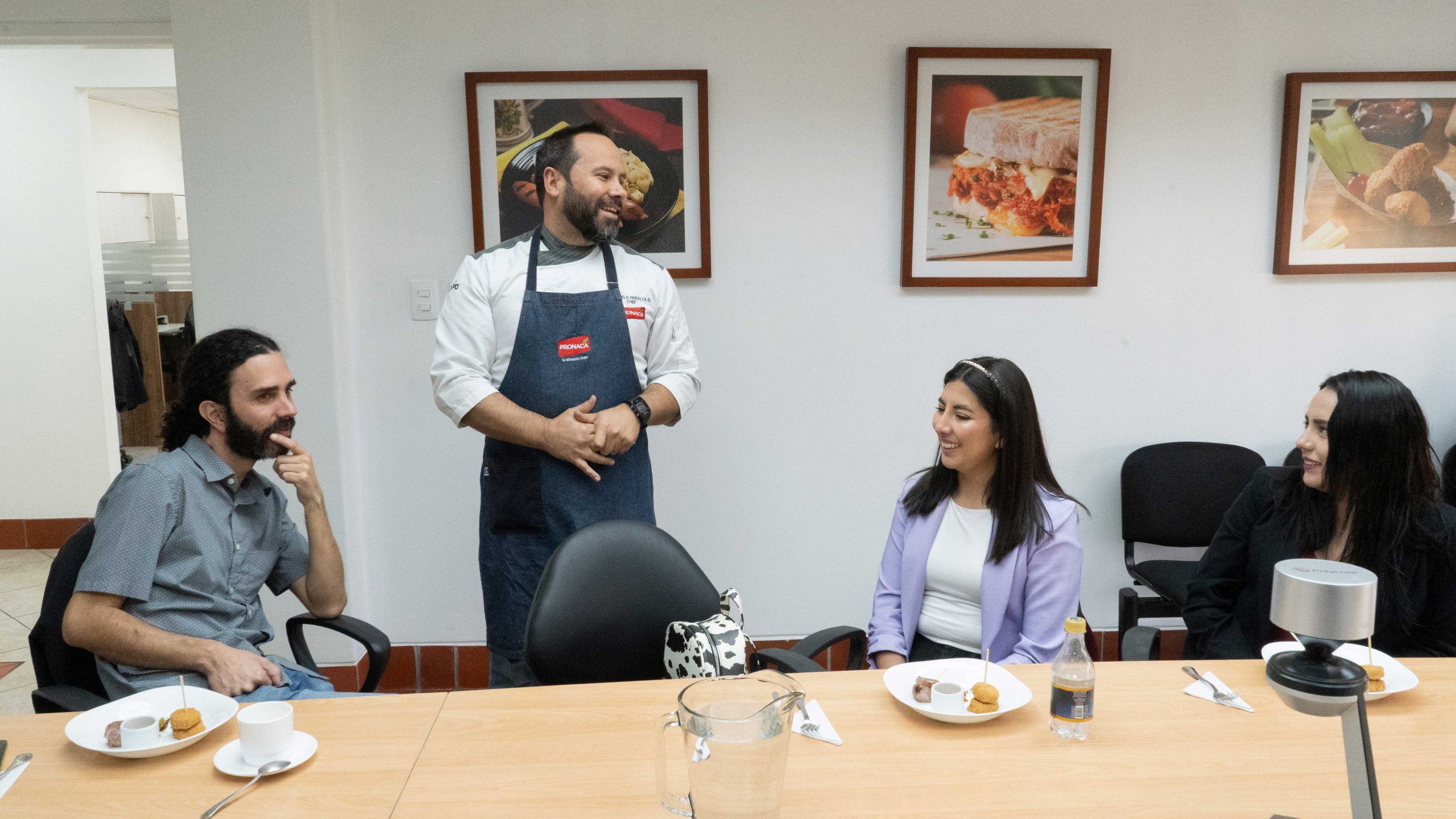 En esta experiencia académica-empresarial, los maestrantes recibieron también a Marcello Peralta, chef del área de investigación y desarrollo quien compartió con los invitados un plato degustación con 2 productos nuevos de Pronaca: nuggets de su línea Veggie Deli y chorizo paisa que fueron lanzados recientemente al mercado. Además, nuestros estudiantes participaron en una evaluación sensorial que tenía como objetivo que probaran un producto y encontraran las diferencias entre las muestras.